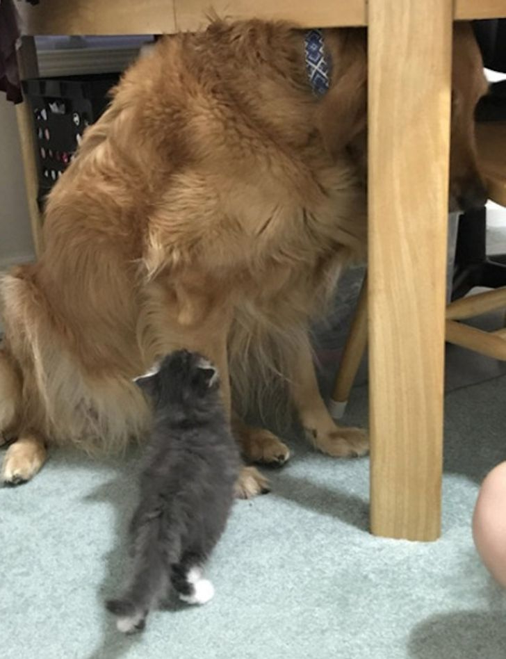 巨大なサイズの違いにもかかわらず、小さな子猫は家のボスになることに成功し、彼らの相互作用を目撃するすべての人を楽しませています。この面白い役割の逆転は、勇気と態度がしばしばサイズよりも重要であること、そして動物たちがその個性で私たちを驚かせ続けることを示しています。