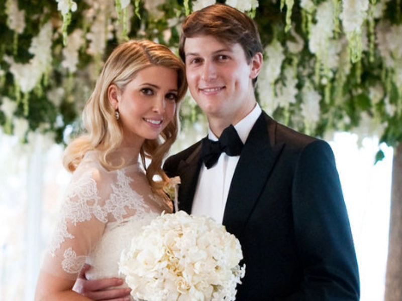イヴァンカ・トランプは結婚式にヴェラ・ワングのガウンを選び、洗練されたディテールと sophisticated なシルエットが特徴でした。優雅なデザインと有名な職人技が彼女を輝く花嫁にし、クラシックなスタイルという評判を追加しました。