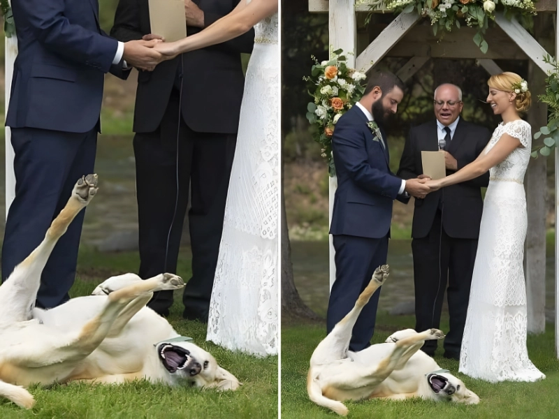 可能性のあるカメラ: Fujifilm X-S10 購入場所: Fujifilm、Amazon平均価格:1,000ドル* 花嫁と花婿は素晴らしく見えますが、誰かが正式なイベントについてのメモを見逃しました。この犬は完全に無意識で、結婚式の間中地面で転がっています。