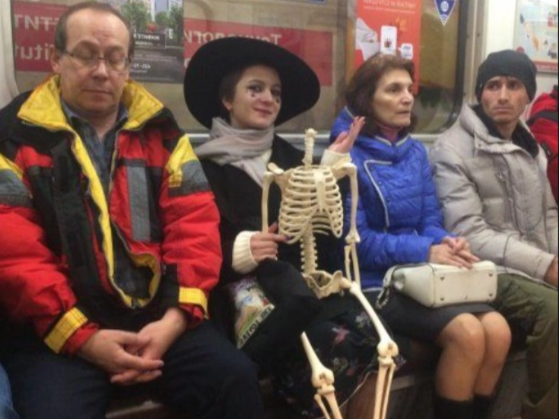 クローゼットにスケルトンをしまう必要があるでしょうか?この想像力豊かな通勤客は風変わりな仲間を連れてくることで、普通の旅を幻想的な冒険に変えました。