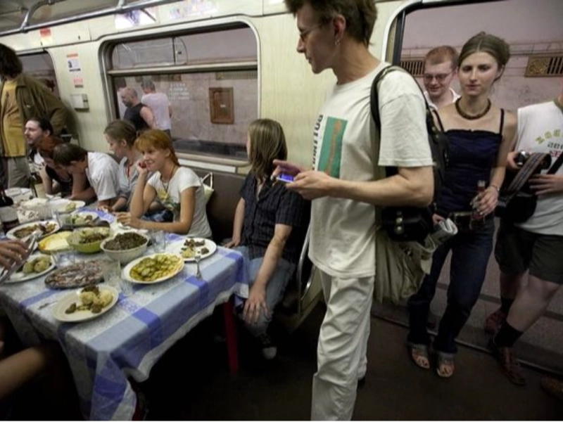 通勤をパーティーに変えてみませんか?この活気のあるグループは地下鉄を祝宴のホールに変え、周りの全員と食べ物、笑い、喜びを分かち合いました。