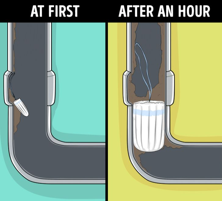 タンポンやナプキンなどの女性の衛生用品は水分を吸収するように設計されています。その目的には有用ですが、これが流すことを危険にします。水中では膨張し、深刻な配管詰まりを引き起こす可能性があります。
