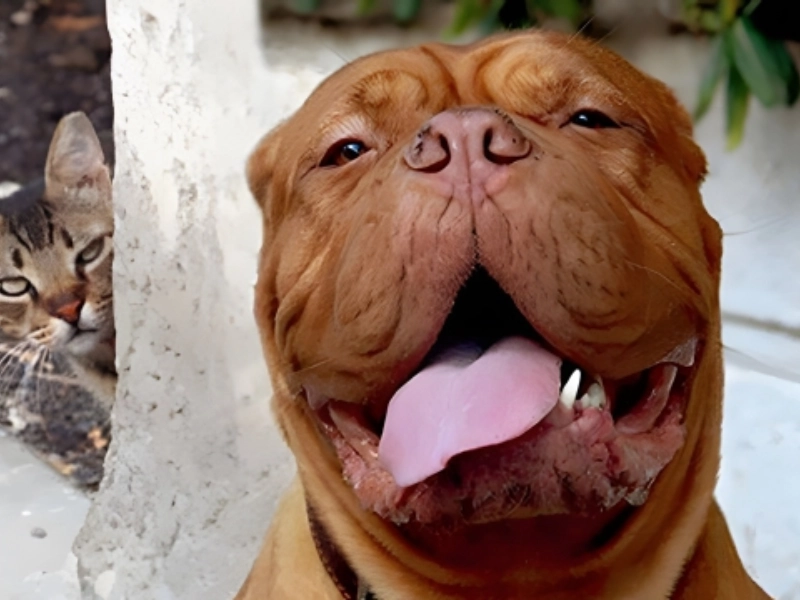 猫は何かを企んでいるように見えます。見出しを想像してみてください:「サミー安らかに眠れ。誰も疑わなかった敵に倒される」。もしかすると、猫は自分の縄張りを取り戻そうか、借りを返そうかと計画しているのかもしれません。犬の陽気な性格に嫉妬している可能性もあります。猫は人間を共有するのが好きではありません。