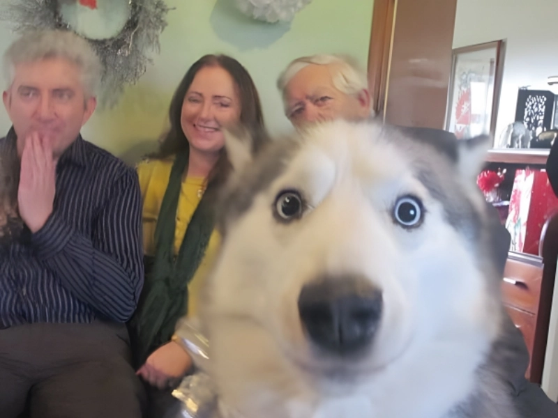 この犬は好奇心旺盛なようで、家族写真に最高の笑顔を見せています。ただ楽しみに参加したいだけなのかもしれません。彼の登場で写真はさらに良くなりました。あの愛らしい顔に誰も怒ることはできません。犬の表情は本当にコミカルです。いい子だねと褒めてあげれば、次回はもっと明るく笑ってくれるでしょう。家族の写真に犬を含めることは、常に特別な魅力を加えてくれます。