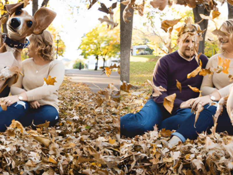 このカップルが婚約した時、彼らの小さなダックスフントがおしゃれに写真撮影を邪魔しました。背景にいるはずだったのに、彼は主役になりたかったのです。もしかすると、芸術的な趣きのために葉っぱを追加していたのかもしれません。いずれにせよ、彼は注目を集めてしまいました。