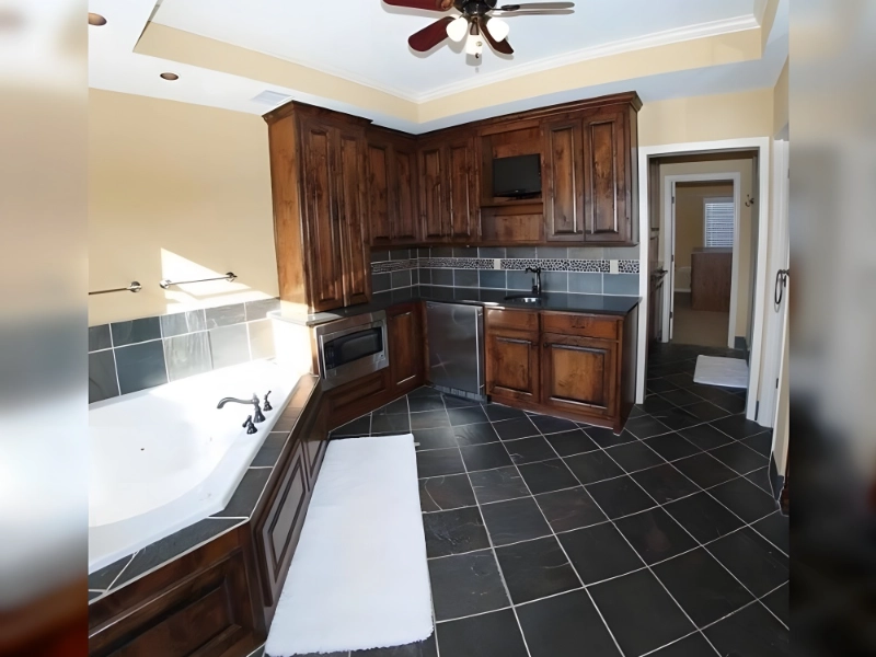 Zum Abschluss der Serie: Dieses Zimmer kommt ganz ohne Bett aus. Das Bild zeigt höchstwahrscheinlich eine etwas danebengegangene Schlafzimmerrenovierung, die das gewünschte Ergebnis fast, aber nicht ganz erreicht hat. Der Raum ist vermutlich vollständig mit üblichem Schlafzimmermobiliar wie Schrank, Kommode, Nachttischen und sogar dekorativen Elementen wie Vorhängen oder Kunst ausgestattet. Doch das Wichtigste fehlt aufs Deutlichste: das Bett selbst. Dies erzeugt eine humorvolle und bisweilen surreale Szene, als hätten die Renovierer den Hauptzweck des Zimmers völlig aus den Augen verloren, weil sie sich in Details verloren haben. Der Fotograf hat diesen Moment der Absurdität gekonnt eingefangen und betont damit den mitunter kuriosen Charakter von Heimwerkerarbeiten. Dieses Bild könnte das Ergebnis einer Lieferverzögerung, eines Messfehlers, der keinen Platz für das Bett ließ, oder schlichtweg falsch gesetzter Prioritäten im Renovierungsprojekt sein. Was auch immer der Grund ist, das Bild erinnert uns auf humorvolle Weise daran, bei Hausreparaturen stets das große Ganze im Blick zu behalten. Diese visuelle Pointe lädt die Betrachter ein, sich die verblüffte Reaktion eines jeden vorzustellen, der dieses „Schlafzimmer“ zweckentsprechend nutzen möchte.