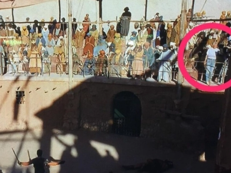 In einer der Filmszenen taucht kurz das Bild eines Mannes in Jeans und T-Shirt auf – eine ungewollte Zeitreise.