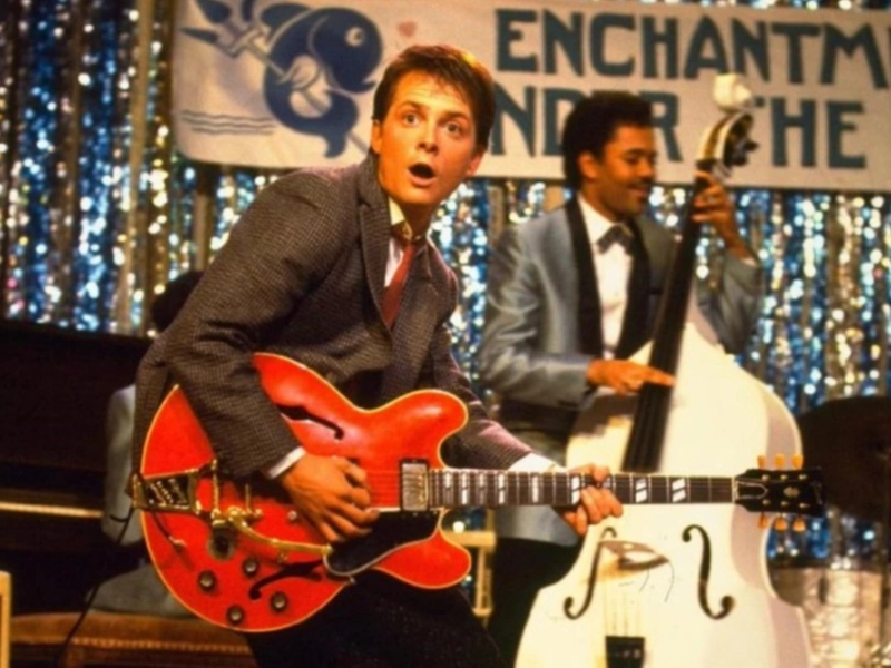 In der Szene, in der seine Eltern 1955 ihren Abschlussball feiern, spielt der Protagonist tatsächlich eine Gibson ES-345-Gitarre aus dem Jahr 1958.