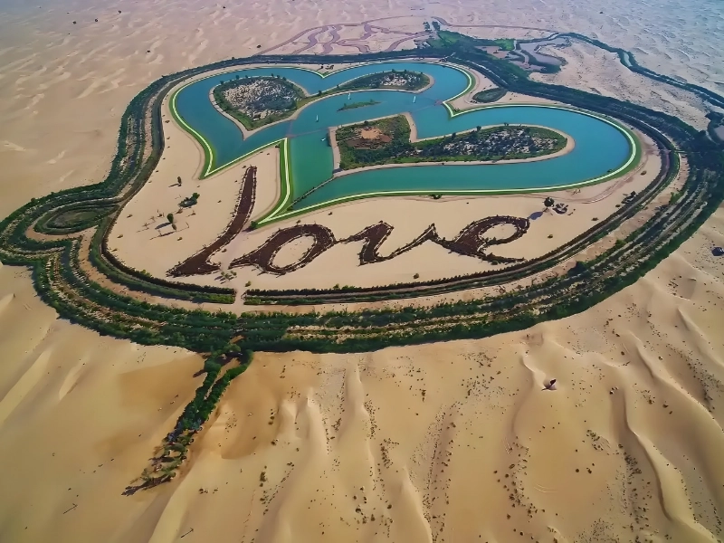 Dubaï, une ville qui ne cesse d'étonner, réserve une autre merveille aux amoureux. Imaginez : après un voyage pittoresque au départ de Dubaï, vous arrivez au Love Lake, un spectacle sur le thème de l'amour niché dans le désert d'Al Qudra. Conçu pour capturer les cœurs au sens propre comme au figuré, cette attraction n'est pas un étang ordinaire. Imaginez deux masses d'eau immenses, dignes d'être vues de l'espace, formant deux cœurs entrelacés ! Des sièges et des portails en forme de cœur sont également présents, parfaits pour des clichés dignes d'Instagram.