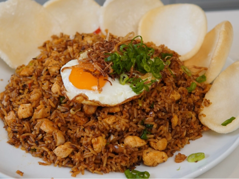 Le plat national de l'Indonésie est le Nasi Goreng, un riz frit épicé préparé avec des œufs et des épices.