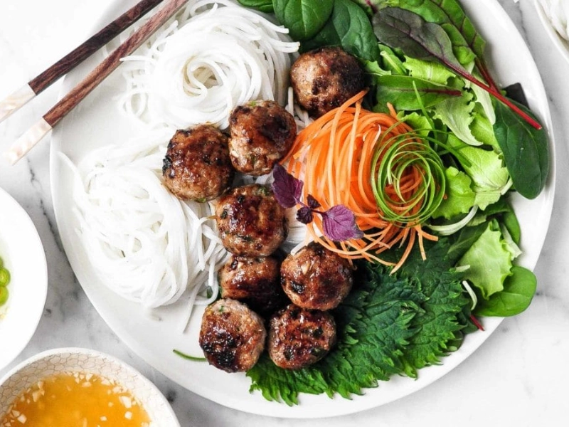 Bun Cha : un plat vietnamien classique à base de porc grillé et de nouilles.