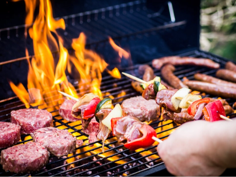 Barbecue : Un incontournable des célébrations américaines, le barbecue consiste en viandes et légumes marinés puis grillés.