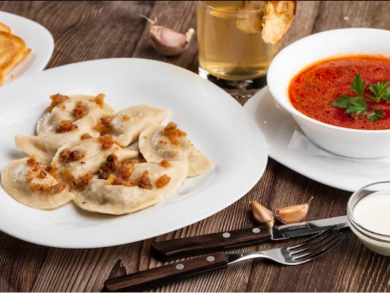 Parmi les plats ukrainiens célèbres figurent le bortsch, une soupe de légumes et de viande, et les varenyky, des dumplings à la pâte fine avec diverses farces.