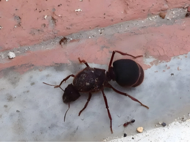 Quelqu'un a découvert cette fourmi géante se promenant à côté d'une fourmi ordinaire après une inondation, sans savoir d'où elle venait. Dans quel réservoir de déchets toxiques cette grosse fourmi était-elle tombée ? Comment peut-elle être si beaucoup plus grande qu'une fourmi normale ?