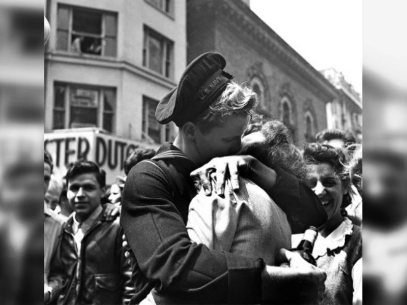 Le 8 mai 1945 : Un baiser triomphal sur Times Square, à New York.
