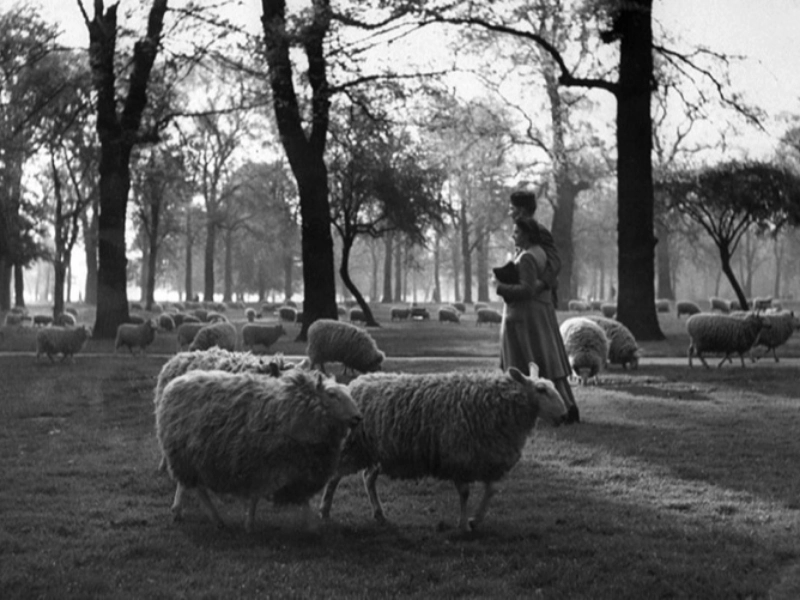 Une promenade romantique dans les Kensington Gardens, Londres, 1945.