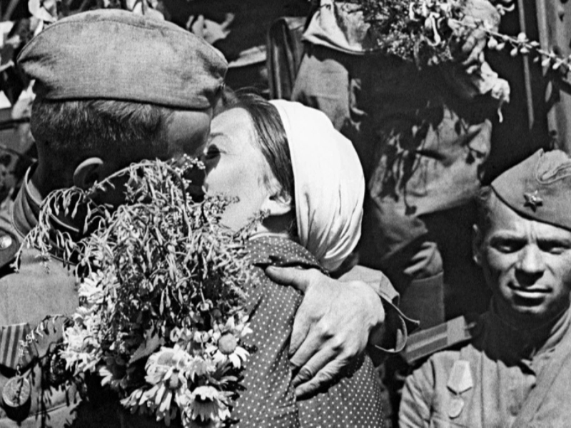 1945 : L'épouse retrouve son héros à Moscou.
