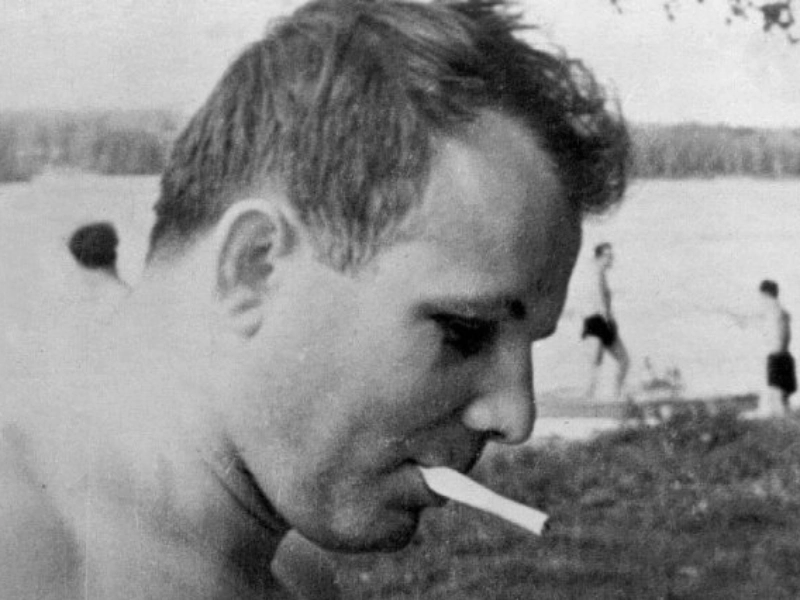 Années 1960. Youri Gagarine lors d'un pique-nique à la campagne avec des amis.