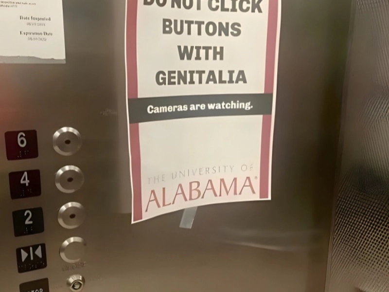 Nous avons ici une scène si typiquement universitaire qu'elle mériterait son propre chapitre dans le folklore estudiantin – oui, nous sommes de vrais supporters de l'Alabama, donc nous pouvons l'apprécier. L'image montre un panneau officiel qui a visiblement dû être installé en réaction à des comportements étudiants assez fascinants lors d'activités post-soirée. Ce n'est pas seulement le panneau lui-même, mais aussi le fait que les autorités aient jugé nécessaire de souligner expressément la présence de caméras de surveillance – un détail qui soulève plusieurs questions sur la fréquence et la nature de ces événements.